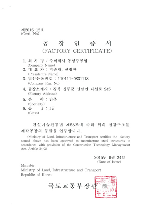 공장인증서