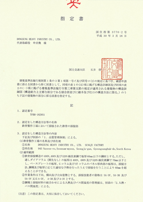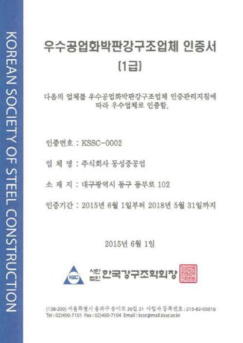 우수공업화박판강구조업체 1급