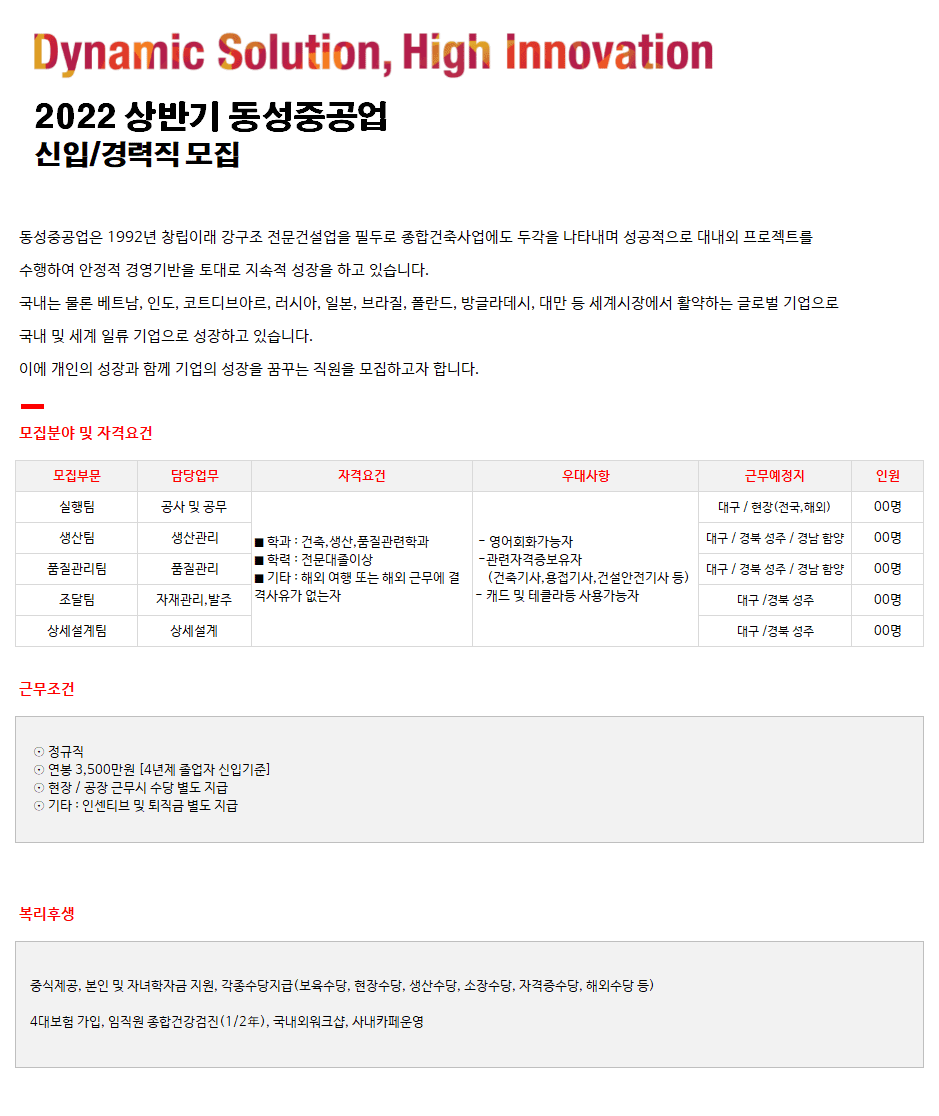 [마감] 2022 상반기 동성중공업 신입/경력직 모집