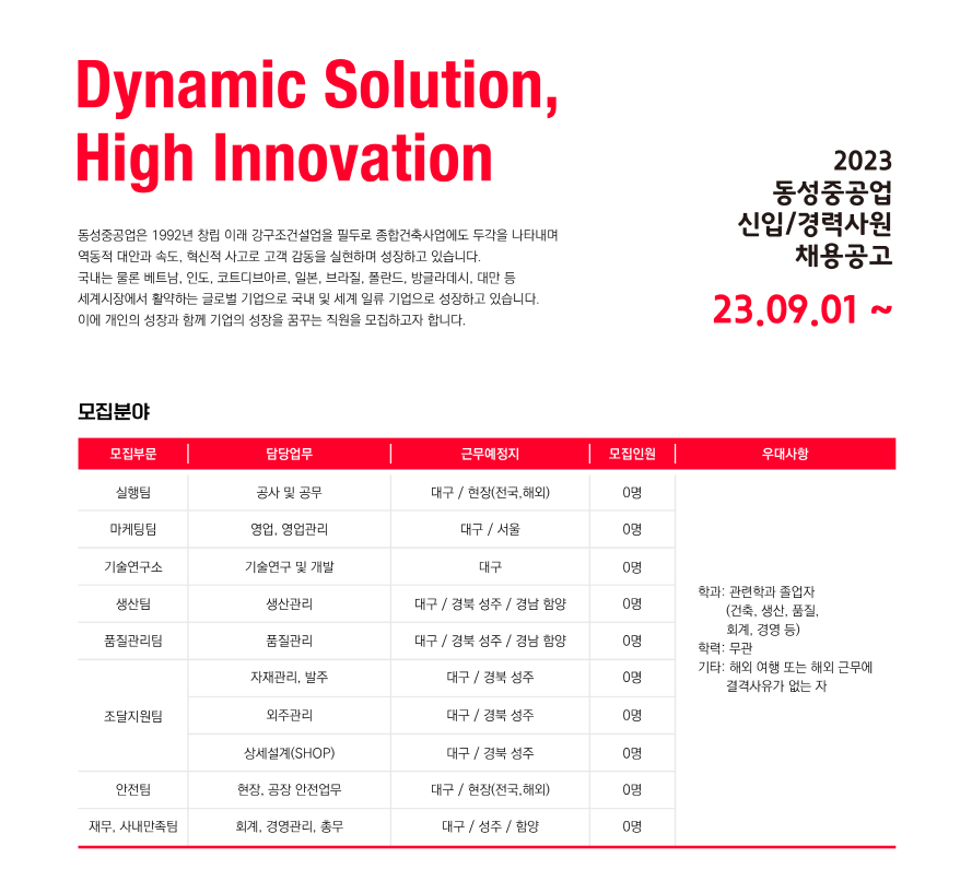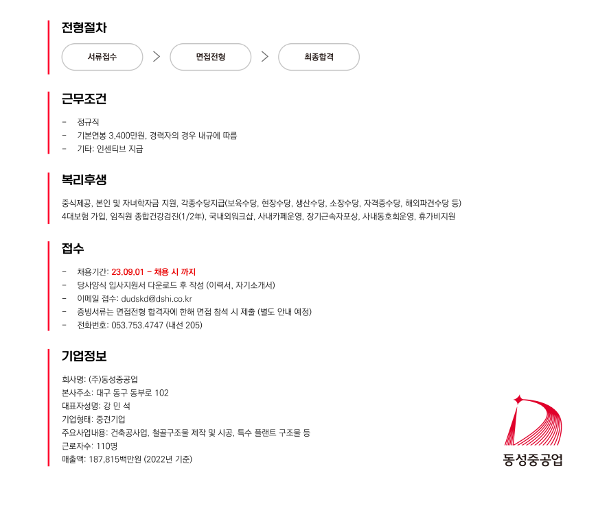 [마감] 2023 하반기 동성중공업 신입/경력직 채용 공고